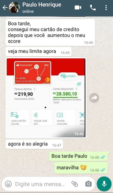Em menos de 2 dias meu score estava bom, super recomendo o serviço!